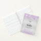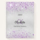 A faux silver looking background decorated with lavender, violet faux glitter dust. Personalize and add your first name, monogram initials, full name and a year.