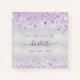 A faux silver looking background with violet, lavender faux glitter dust. Add your name, and text. The name is written with a hand lettered style script with swashes.