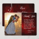 Silver Leaf Deep Red Photo Wedding Thank You Card
