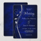 Silver Leaf Swirl Deep Blue Wedding Invitation