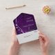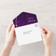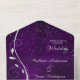 This pretty all season wedding invitation with tear away RSVP card in tones of silver and purple will give a sense of elegance to your wedding! The inside has a graceful silver swirl adorned with a few leaves, and there's a subtle silver confetti overlay to add a bit of sparkle. Your wedding text is also in silver at the right of the leaf swirl image. Everything is placed on a stunning deep purple gradient background that seems to almost glow. The bottom tear away RSVP portion has the swirl image continued, but is white to make it easy for your respondent to mark. If you don't need a text field, just blank it out, and if you need help organising different text, please contact us. We are always happy to help. If you're having a buffet reception, we can work with you to re-design the RSVP portion, so don't hesitate to ask! An added bonus and personal touch is your own photograph on the back flap.