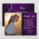 Your photograph is located on the left side of this horizontal photo template wedding thank you card. The right side has the text "Thank You" written in a pretty script in white, followed by your own special message. Your custom signature and wedding date is at the lower right. The back of the invitation has the same gradient purple background with an elegant silver leaf swirl, along with the famous "Love" quote from Scripture. All the text is easily customised to anything else you'd prefer.