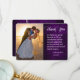 Silver Leaf Swirl Purple Photo Wedding Thank You Card