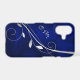 Here's an elegant phone case that features a modern silver leaf swirl against a deep royal blue gradient background. Your two letter monogram is at the left side in matching silver.