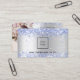 A faux silver looking background. Decorated with light blue confetti. Personalise and add your business logo and a text on front.