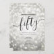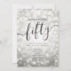 Elegant Glam Silver Glitter Lights 50th Birthday Script template featuring party program and menu text, glitter lights and modern typography script.