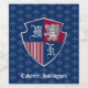 Create your very own Coat of Arms or emblem with this simple, classic escutcheon or shield design. Navy blue colour block and crimson red stripes decorate a shield with silver mediaeval heraldry lion or griffin. The background is a matching blue with classic fleur de lis pattern.  Replace the sample monogram with your own initials for a personalised gift. Makes a wonderful gift for birthday, retirement, promotion, Father’s Day, Bachelor Party or Stag Do, graduation and other special occasions.