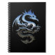Show your love of dragons with this Silver Lucky Dragon Black Spiral Notebook. This design features a simple, solid black background and an intricate silver metallic shield dragon. Also a matching pen is available is this same style. Makes a great gift!