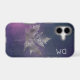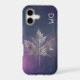 This pretty personalized phone case has a purple pink gradient background that is slightly distressed. At the center is a shiny silver maple leaf image. Your name or monogram is above it at the right side. You may change the font, if you'd like, by customizing.