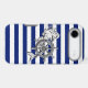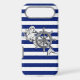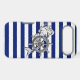 A silver chrome like mermaid figure design on a navy blue stripes decor. A modern nautical gift.