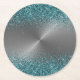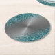 Silver Metal Look Glitter Teal Circular Metallic Round Paper Coaster