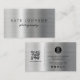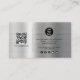 A beautiful design incorporating your business logo and your QR Code. This simple silver metal look modern script business card is ideal for all types of businesses. A simple and professional way to introduce your business. Social media icons included in the design of this business card for you to use. Personalise your details to create your own unique business card.