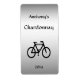 This lovely white wine bottle label features a contemporary design of an abstract pattern of a black bicycle on a silver, grey and white metallic background. All text can be customised with your special information.