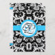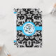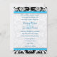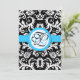 Silver Metallic Vintage Damask Bright Aqua Trim Invitation