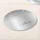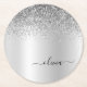 Silver Monogram Glitter Sparkle Girly Script Round Paper Coaster