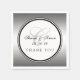 Printed Metallic Silver, Black and White, Grey Monogram Wedding Paper Napkins with Bride and Groom Names, Wedding Date and Thank You. By Elke Clarke ©. Available in our store at www.zazzle.com/ElegantMonogramgs. Customise with your married last name initial and use at your wedding reception dinner. Perfect for silver and black wedding colour scheme.