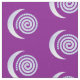 Silver gradient crescent moon accompanied by a spiral pinwheel of light, on a deep purple evening sky background