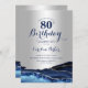 Silver Navy Blue Agate Marble 80th Birthday Invitation