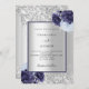 Silver navy blue floral wedding invitation