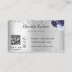 A faux silver looking background decorated with navy blue and light blue florals, flowers. Personalise and add your monogram initials, first name and full name on front.