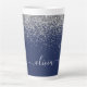 Navy Blue and Silver Faux Foil Metallic Sparkle Glitter Script Monogram Name Latte Coffee Cup Mug. This makes the perfect sweet 16 birthday, wedding, bridal shower, anniversary, baby shower or bachelorette party gift for someone that loves glam luxury and chic styles.
