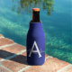 Silver Navy Blue Glitter Brushed Metal Monogram Bottle Cooler