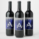 Silver Navy Blue Glitter Brushed Metal Monogram Wine Label