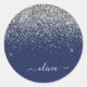 Silver Navy Blue Glitter Girly Monogram Name Classic Round Sticker