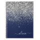 Silver Navy Blue Glitter Girly Monogram Name Notebook