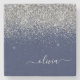 Silver Navy Blue Glitter Girly Monogram Name Stone Coaster