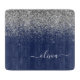 Silver Navy Blue Glitter Script Monogram Girly Cutting Board