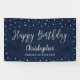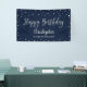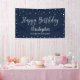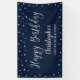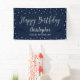 This stylish birthday banner design features silver "Happy Birthday" typography on a navy blue background. You can personalise name & year text and the background colour. More party stationery and event decoration items are available at my shop BaraBomDesign. Thanks!