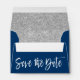 Navy Blue and Silver Faux Glitter and Sparkle Save the Date White Script Envelopes are perfect for a modern and elegant Save the Date Card. These Baby Shower, Bridal Shower, Bachelorette Party by Mail, Wedding or Delay the Date Envelopes are perfect for that event or party that needs to moved to a new date.