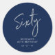 Silver & Navy Blue Sixty 60th Birthday Party Favou Classic Round Sticker