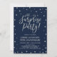 Celebrate your special day with this stylish modern party invitation template. This design features chic silver glitter confetti with a navy background.