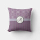 Silver on Lavender Damask with Stripes & Monogram Cushion