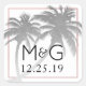 Silver Palm Tree Tropical Wedding Monogram Square Sticker