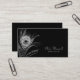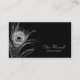 Here's a simple, modern business card that is definitely memorable. It features your name and title at the lower right front corner. At the left is a beautiful, glittery, silver peacock feather image. The image and text are placed on a dramatic black background. The back of the card is also black, with several fields for you to customise or delete, as you prefer.