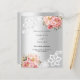 An elegant and romantic 25th wedding anniversary invitation. A faux silver looking background decorated with pink and rose gold florals, roses and white lace. Personalise and add your names and details.