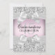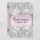Silver & Pink Quinceañera Party Invitation. Pretty Silver glitter & diamond jewel bow. Please note: All flat images!