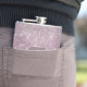 This elegant flask has a pretty silver star sparkle pattern on a jewel like rose pink background. Your three letter monogram is in silver at the centre of a silver lined dusty pink ornate banner. Very classy! *Please note - the image is printed and does not contain glitter.