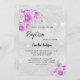 A faux silver looking background with faux silver sparkles and pink and violet flowers. Personalise and add a name and the details.