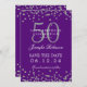 Silver Purple 50 Birthday Save Date Confetti Invitation