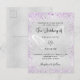 A modern, elegant wedding invitation. Faux silver metallic looking background decorated with purple faux glitter dust and a butterlfy as watermark. Personalize and add your names and wedding details. Black colored letters.