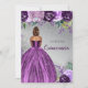 Silver Purple Glitter Sparkle Dress Quinceañera Quince Invitation, Dark Skin Short Brown Hair