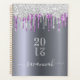 A faux silver looking background with elegant and girly purple faux silver glitter drips, paint drip look. Template for a year (upside down) Personalise and add a name. The name is written in white with a large modern hand lettered style script. Perfect for school, work or organising your personal/family life. To keep the swashes only delete the sample name, leave the spaces or emoji's in front and after the name.