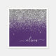 Silver and Purple Sparkle Glitter Monogram Name and Initial Paper Party Napkins. This makes the perfect sweet 16 birthday, wedding, bridal shower, anniversary, baby shower or bachelorette party gift for someone that loves glam luxury and chic styles.