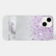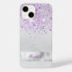 An elegant bright faux silver metallic looking background. Decorated with purple faux glitter dust. Personalise and add your name. The name is written with a purple modern hand lettered style script.