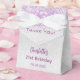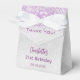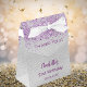 An elegant and glamourous 21st (or any age) birthday party. Faux silver looking background with purple faux glitter, sparkles. With the text: Thank You! Personalise and add your name. The name is written with a trendy hand lettered style script.