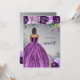 Silver Purple Sparkle Dress Sweet 16 Birthday Invitation. Dark Skin Short Black Hair